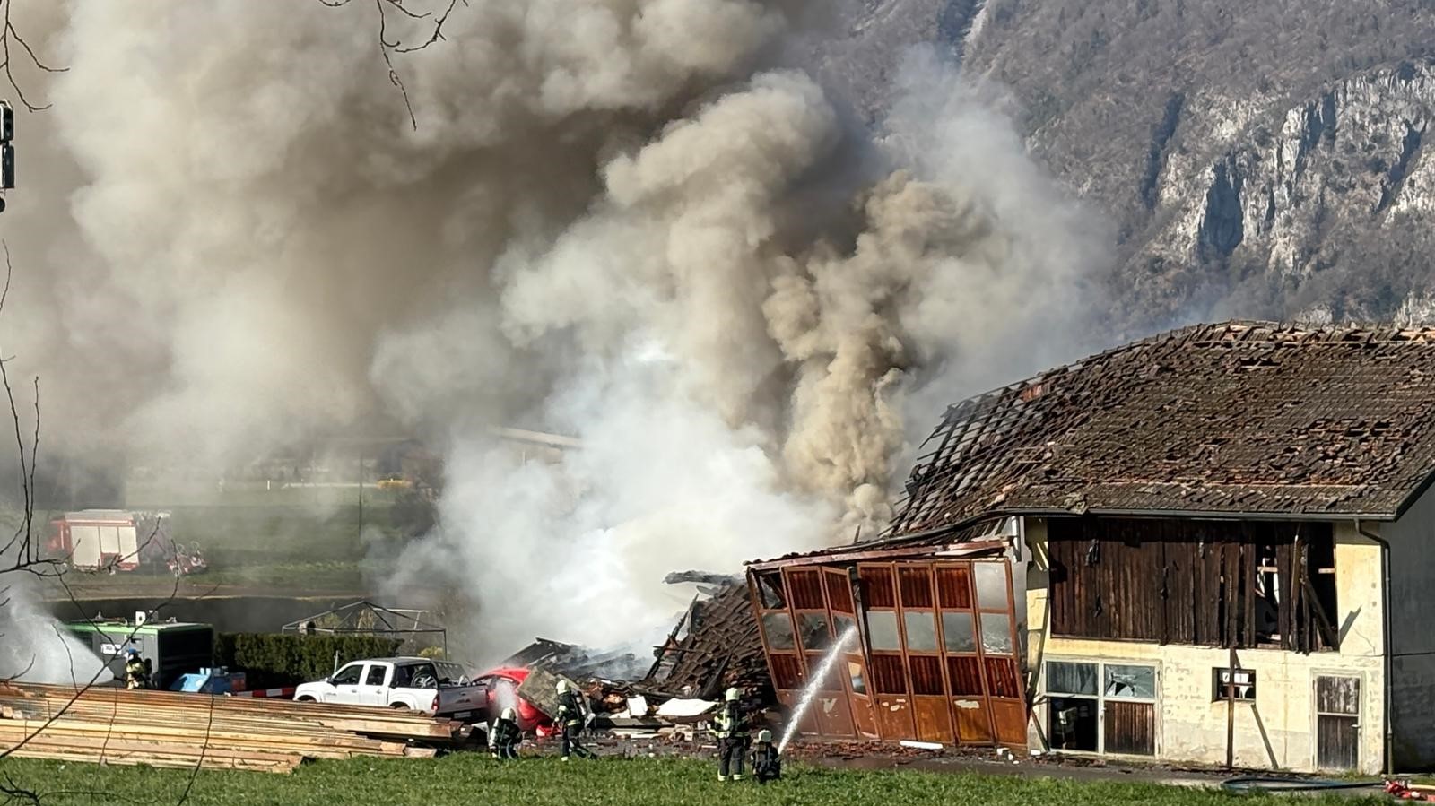 Réveil explosif et enfumé à Illarsaz. Mercredi matin, une conduite de gaz s’est rompue alors que des ouvriers effectuaient des travaux sur une route, proche de la parcelle du Rhône. Elle a même fini par exploser, ce qui a complètement détruit une maison inoccupée, située à proximité selon un communiqué de la police cantonale valaisanne. Un large panache de fumée était visible. Police, pompiers et ambulances ont été dépêchés sur les lieux.