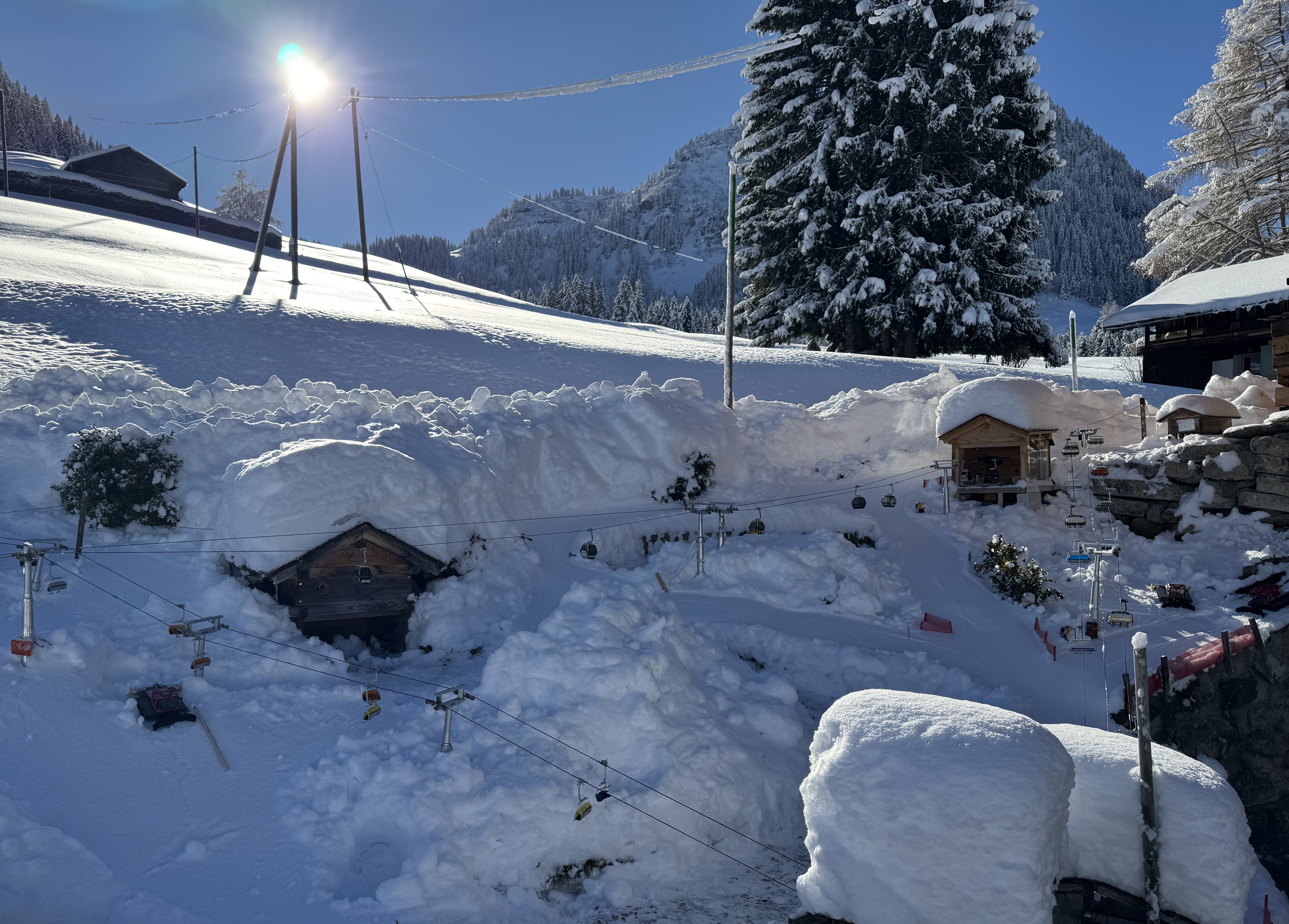 Si cette station de ski proche des Mosses ne vous rappelle rien, c’est normal, la destination est fictive et uniquement composée de remontées mécaniques miniatures. Avec deux mini-télésièges, une télécabine, des chalets et plusieurs dameuses, les pistes, qui débordent de neige, paraissent plus vraies que nature.
