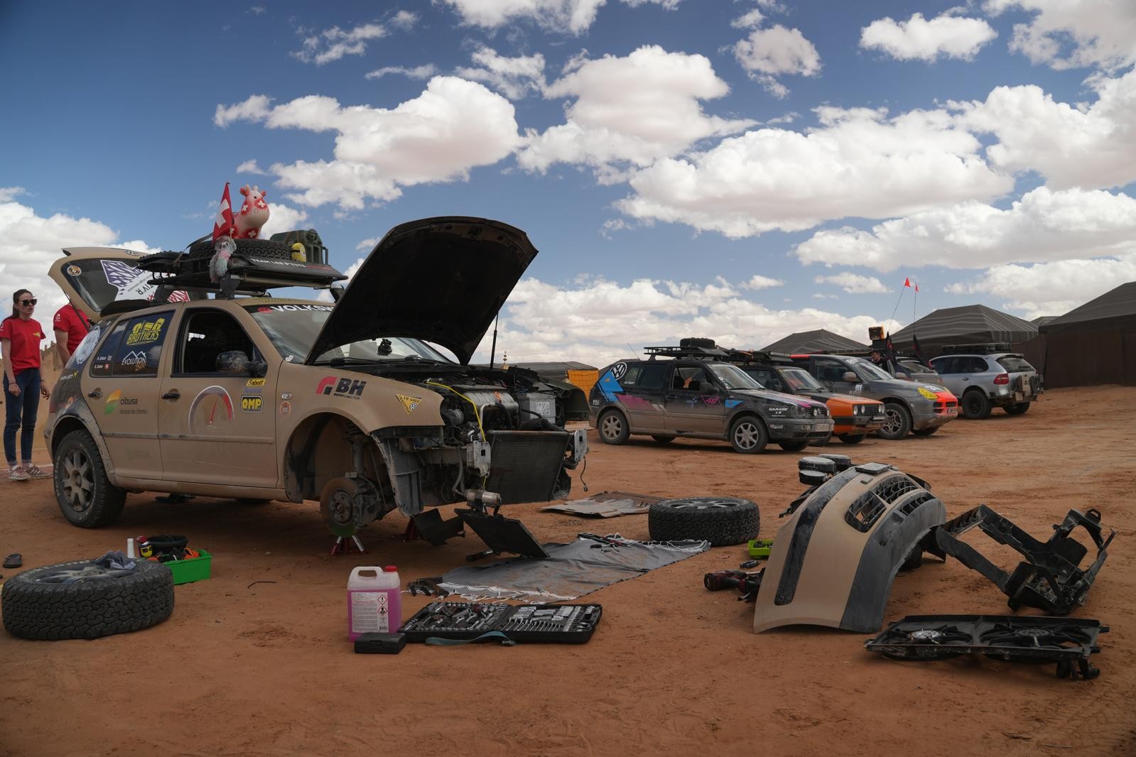 Elle rejoint donc prestement le convoi suisse, composé d’un second binôme de Fribourgeois, Océane Buchs et Matis Julmy. Au volant d’une Golf 4 VR6 et d’une Golf 4 4x4, ils entament une épopée humaine rythmée d’imprévus qu’ils surmontent ensemble. « Avant même de mettre un pied au Maroc, un des deux véhicules a failli nous lâcher en Espagne. Les mécanos ont su réparer la pompe à essence de justesse », se remémore-t-elle avec émotions. « Ce n’était que le début d’une longue liste de pépins : le radiateur, la boîte de vitesses et le pot d’échappement ont pris cher. »