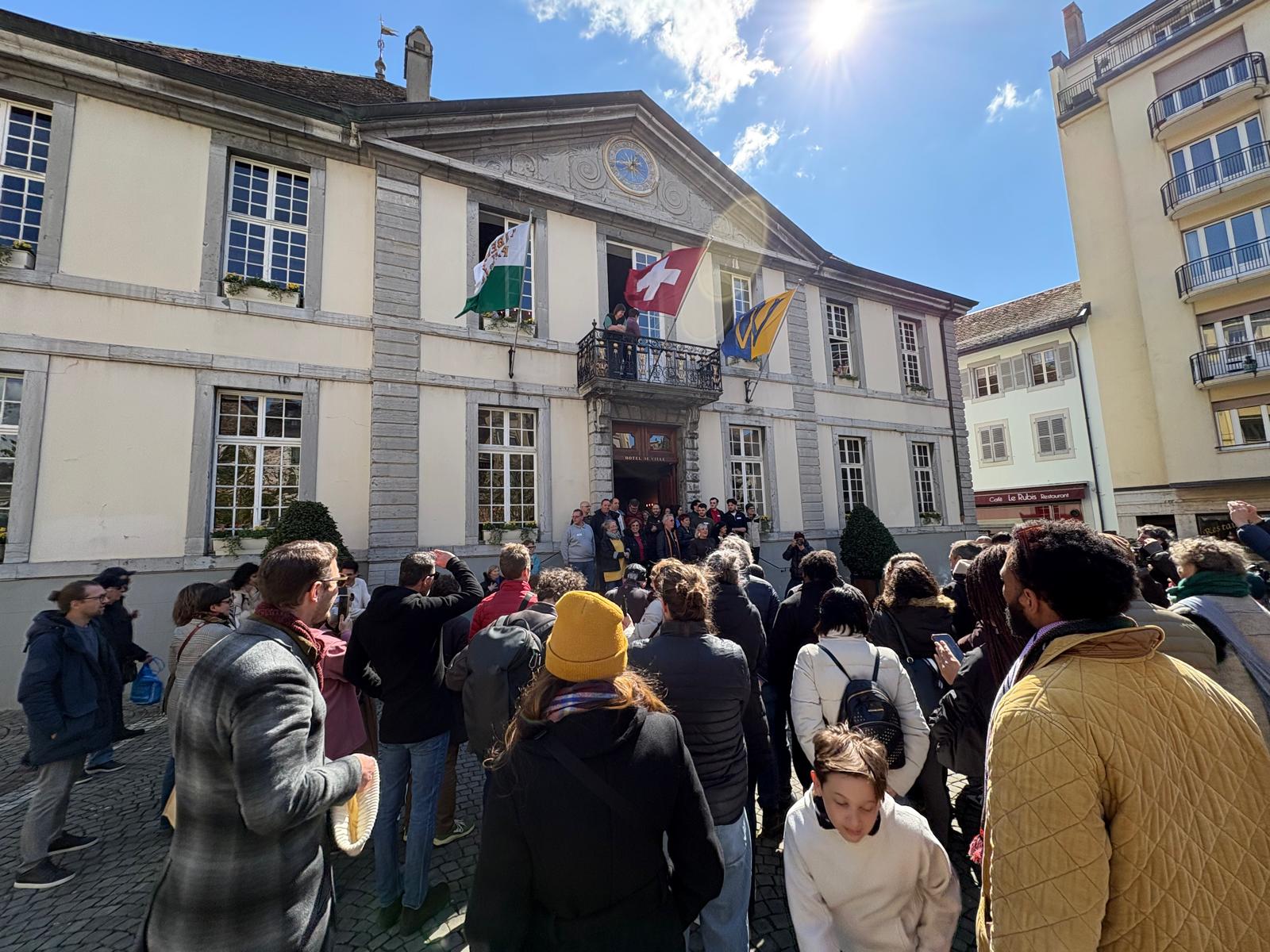 L'annonce des résultats sur la place de l'Hôtel de Ville de Vevey dimanche après-midi. © Radio Chablais