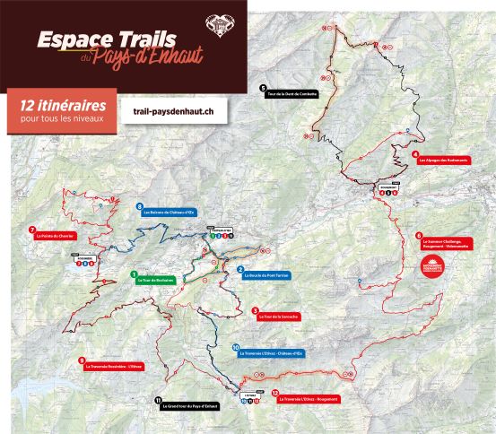 En partenariat avec les autorités vaudoises, Pro Natura et la plateforme francophone Espaces Trail, 12 nouvelles sorties balisées offrent aux amateurs de trail 200 km de sentiers alpins, de Rougemont à Rossinière en passant par Château-d’Oex et l’Etivaz.