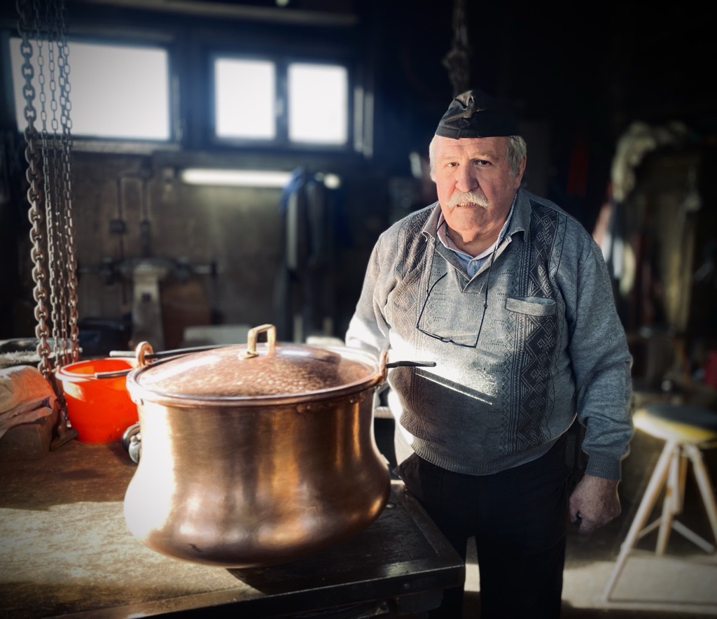 Et si les tranches de l'Etivaz sont aussi savoureuses, c’est en partie grâce à un célèbre Damounais : Pierre Turrian, qui confectionne et répare avec passion depuis plus d’un demi-siècle les chaudrons en cuivre nécessaires à la production fromagère locale. Longtemps considéré comme le dernier chaudronnier de Suisse romande, cette force de la nature de 76 ans s’est forgé une réputation internationale à force d’asséner des milliards de coups de marteau.