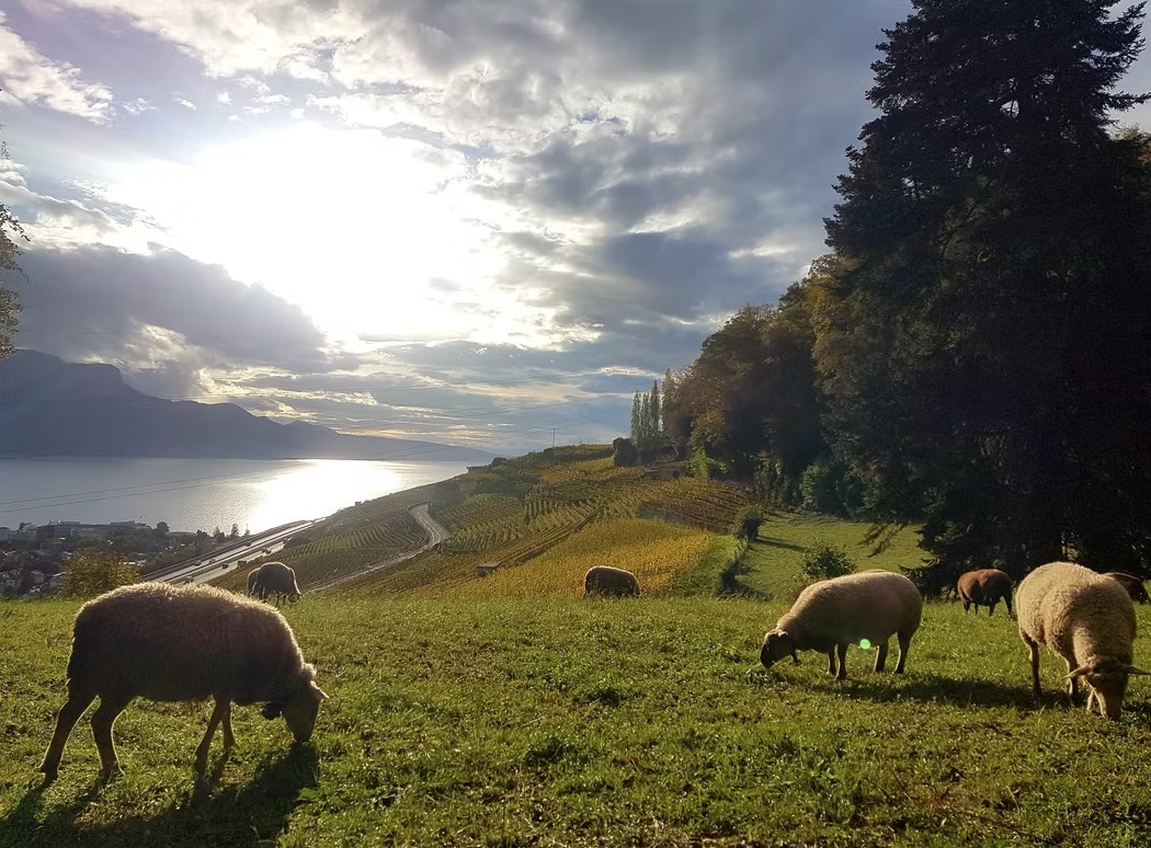 Avec l’arrivée du printemps, une centaine de moutons et d’agneaux broutent paisiblement sur les hauts de Vevey. Tout proche, Léa Mégali, une bergère des temps modernes, veille avec son Border collie sur le troupeau.