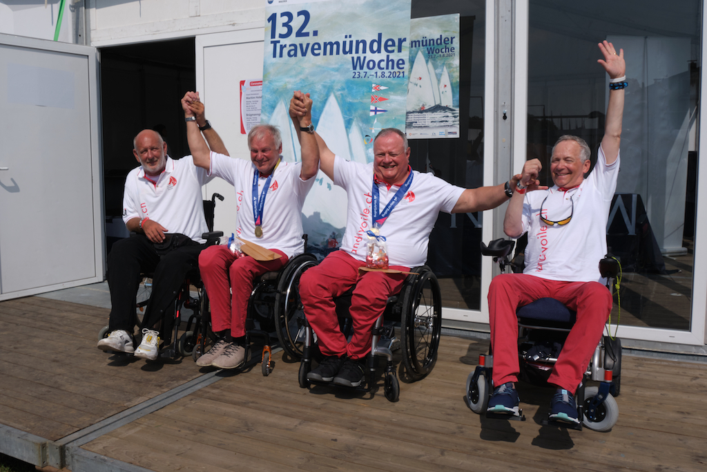 Philippe Moerch (2e depuis la droite) et Daniel Amiguet (à sa gauche) après leur victoire aux Championnats du monde 2021.